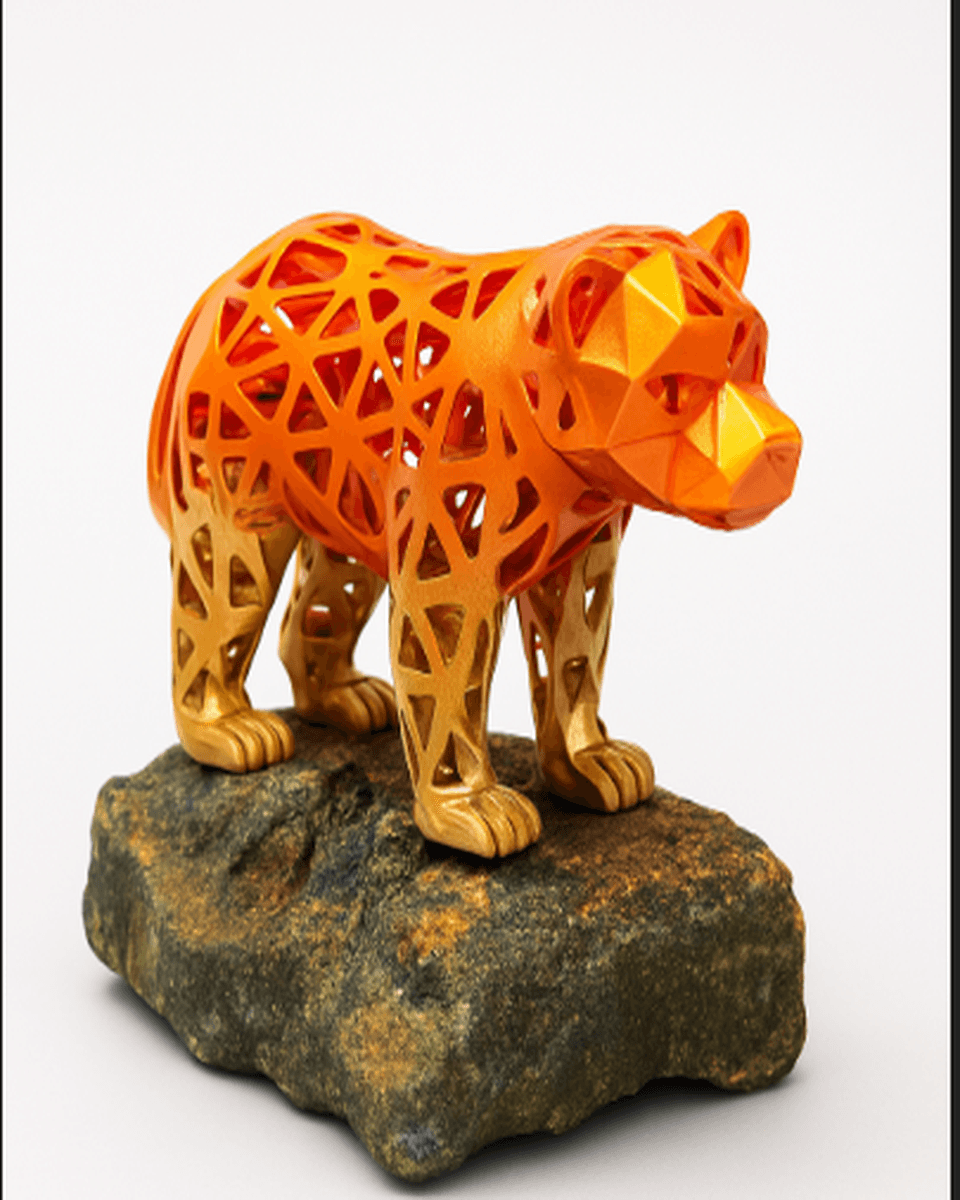 Finish: Hand-painted with gradient tones that highlight the bear’s muscular structure and geometric cuts.